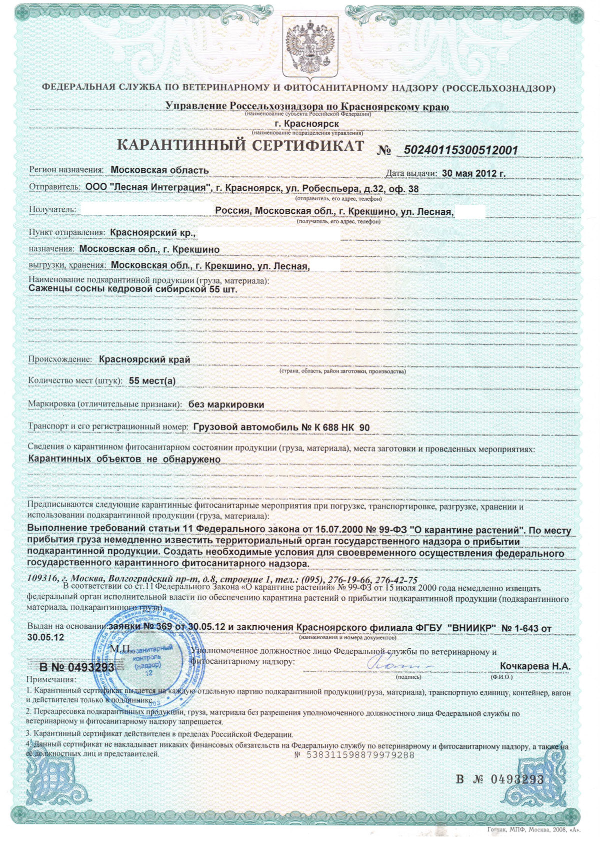 ООО "Лесная Академия-24" на сегодняшний день может предложить Вам отборные сеянцы кедра сибирского, возраст 3-4 года, высота 20 - 25 см., саженцы 150 - 250 см, и крупномерные деревья от 300 - 800 см, ровный ствол, хвоя зеленая без признаков угнетения. Приживаемость сеянцев более 80%. Посадочный материал выращивается в питомнике, из семян плюсовых (продуктивных) деревьев. Все наши партии поставок имеют карантинные сертификаты. Каждая партия сеянцев, переправляемая по территории Российской Федерации, в соответствии с Законом о карантинном контроле, досматривается сотрудниками "Россельхознадзора". Абсолютно вся продукция, проходит контроль качества. Копают сеянцы специалисты с многолетним стажем, затем сортируют и выбирают самые лучшие кедры вручную. Такая схема контроля позволяет сохранить корневую систему растений до 95%.